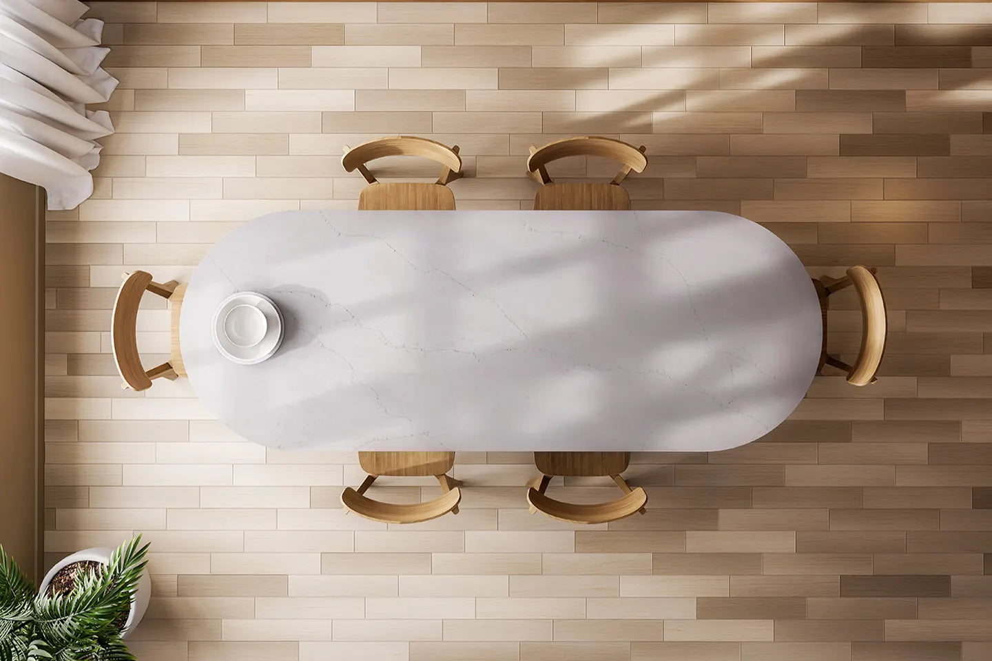 Doğal kuvars minerallerinden üretilir. Gözeneksiz ve pürüzsüz yapısı sayesinde temizlik zahmetini minimuma indirir, günlük kullanımda rahatlık sağlar.